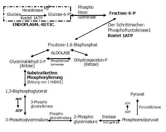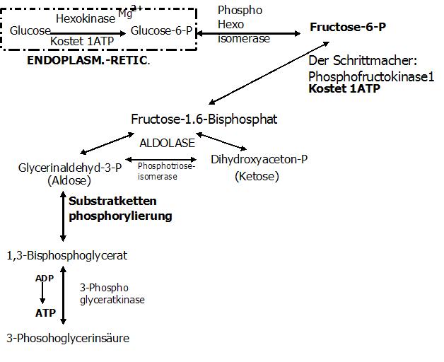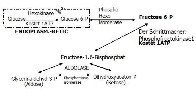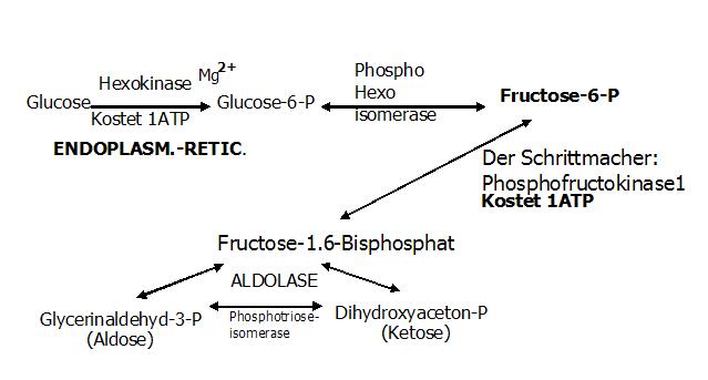 Mit anderen Worten: Hier besteht eine Regulationsmöglichkeit der Glykolyse, die Erste!