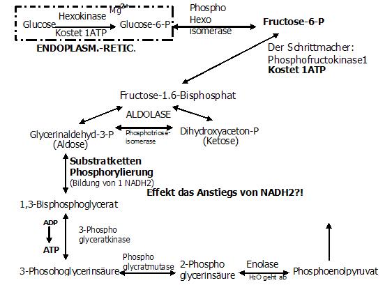Also wäre es ja gar nicht so schlimm wenn die Glykolyse weiter ihren regulären Weg durchsetzen würde, da das entstehende Pyruvatà Acetyl-CoA ja noch